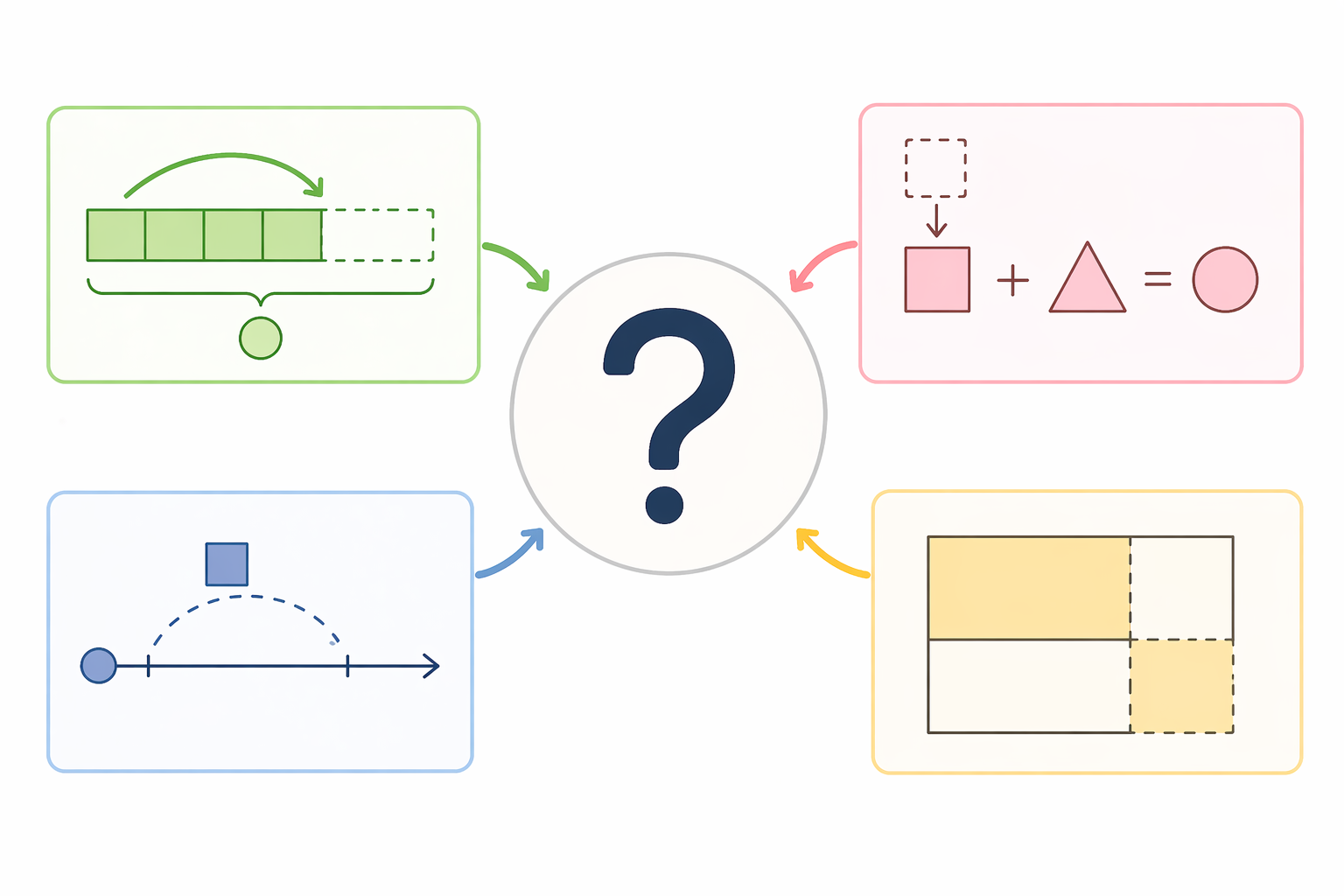 塾でよく使われる図的な解き方には、面積図・線分図・ダイヤグラムなどがあります。これらはどれも「問題の関係を視覚的に整理する」ための道具であり、どれが優れているというわけではありません。問題の内容や、お子さんの理解のしやすさによって、使い分けることが大切です。